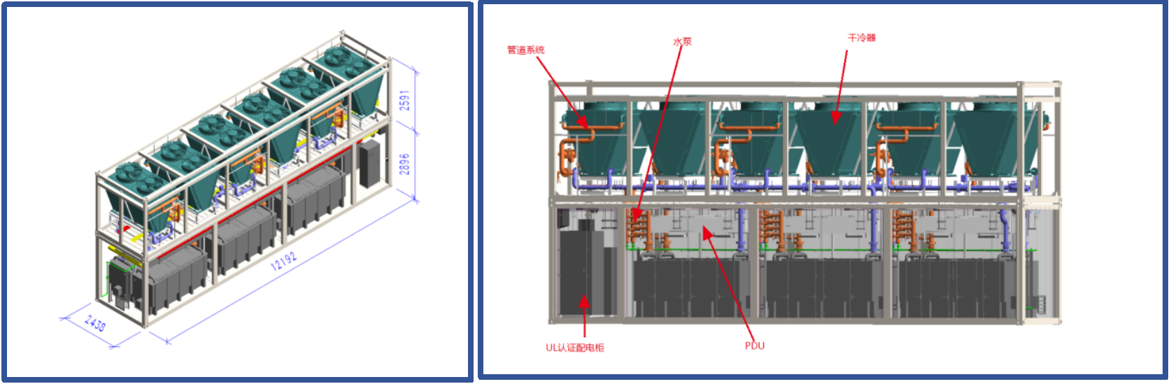 5)内部配置6台tank:制冷量大于189kW/台,,******支持250kW,,,相变氟化液;